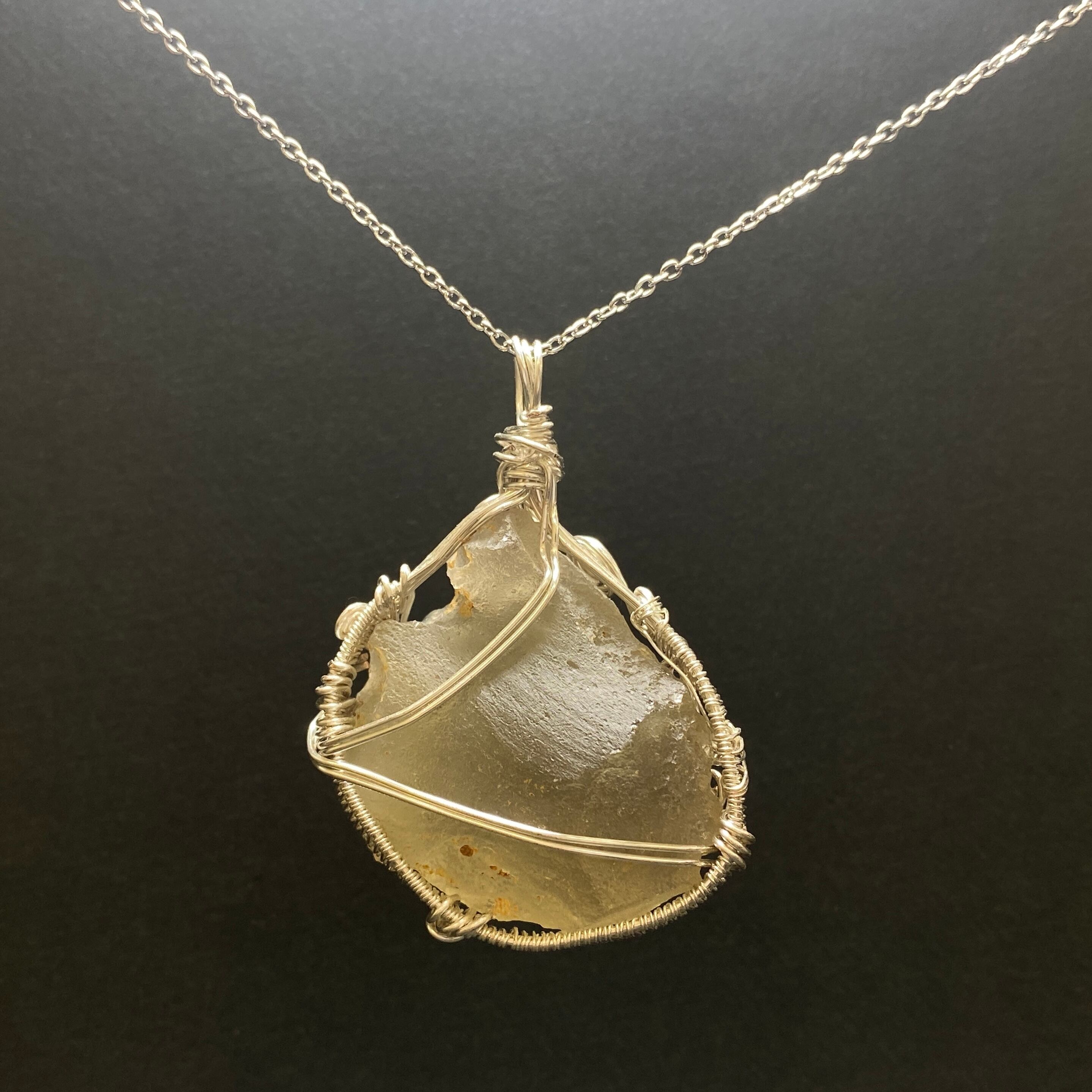 2600万年前のエジプトとのリビア国境近くでの大規模な隕石の衝撃によって形成されたインパクトガラスです。天然ガラスとも言われ、約98%の最も純粋なガラスだそうです。リビアングラスには、クリストバル石(クリストバライト)と呼ばれる白い気泡のような内包物があります。これは高温で形成された珪質の物質です。諸説ありますが、リビア東部とエジプト西部の砂漠には、1000トン以上のリビアンが散らばっていると言われています。その多くは小さいサイズですが、今まで発見された中で1番大きいリビアンは約26kgです。新石器時代、当時の人はリビアンを使ってガラスの道具を作り、後にエジプト人はそれらを使って宝石を作りました。ちなみに、エジプトにあるミラミッドのツタンカーメンの胸当てにちりばめられた石は、リビアングラスで作られています。