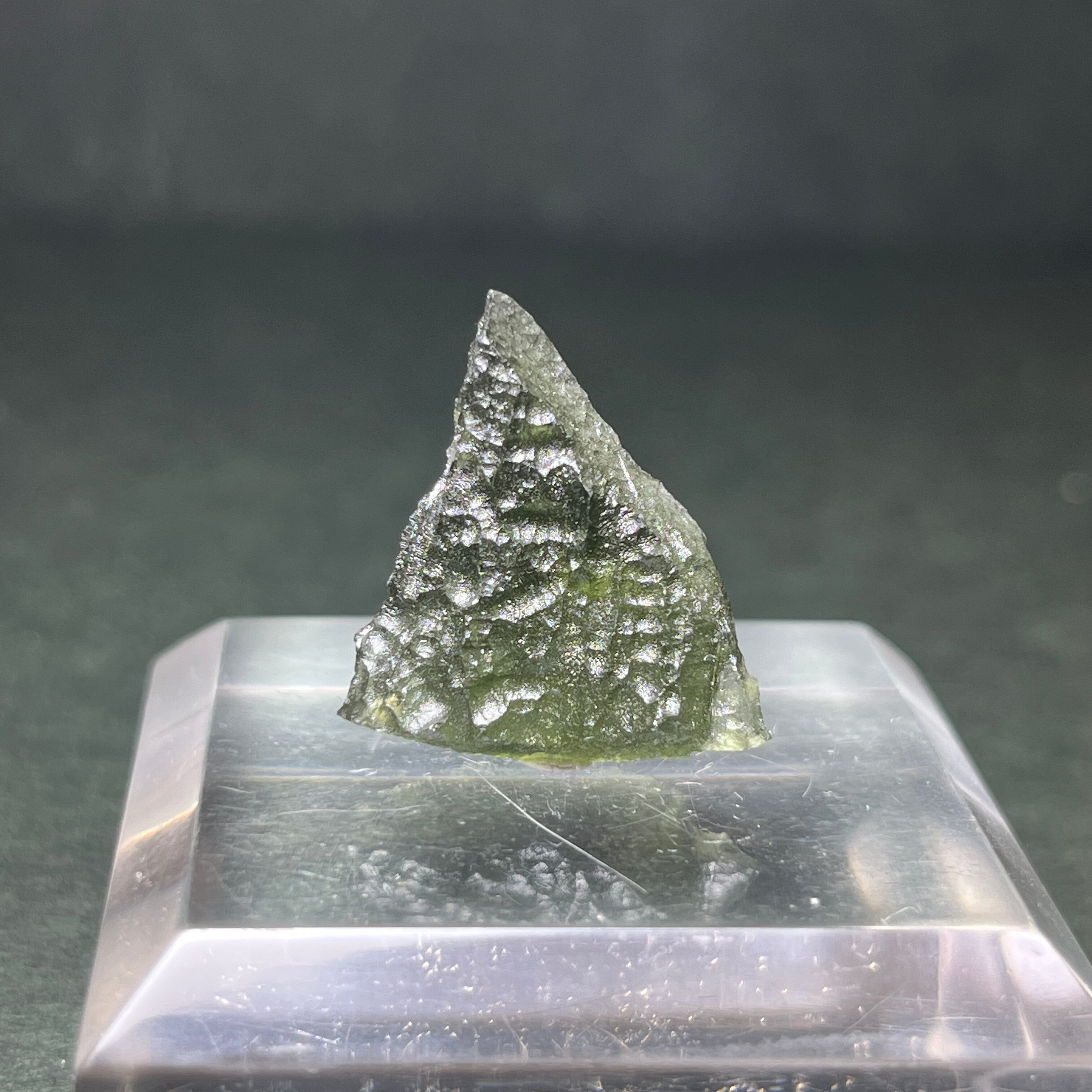 チェコで回収されたインパクトガラスです。近年、高騰し続けている隕石の1つで、形の綺麗なモルダバイトは年々少なくなっております。人気(需要)と在庫(供給)のバランスが崩れており、回収地の本場チェコでも偽物が量産されているほどです。本物のモルダバイトを手にしたいのであれば、安価で販売されているモルダバイトには手を出さないことをオススメします。ビーズのブレスレットや研磨された綺麗なモルダバイトも同様です。モルダバイトを購入する時にはご注意ください。