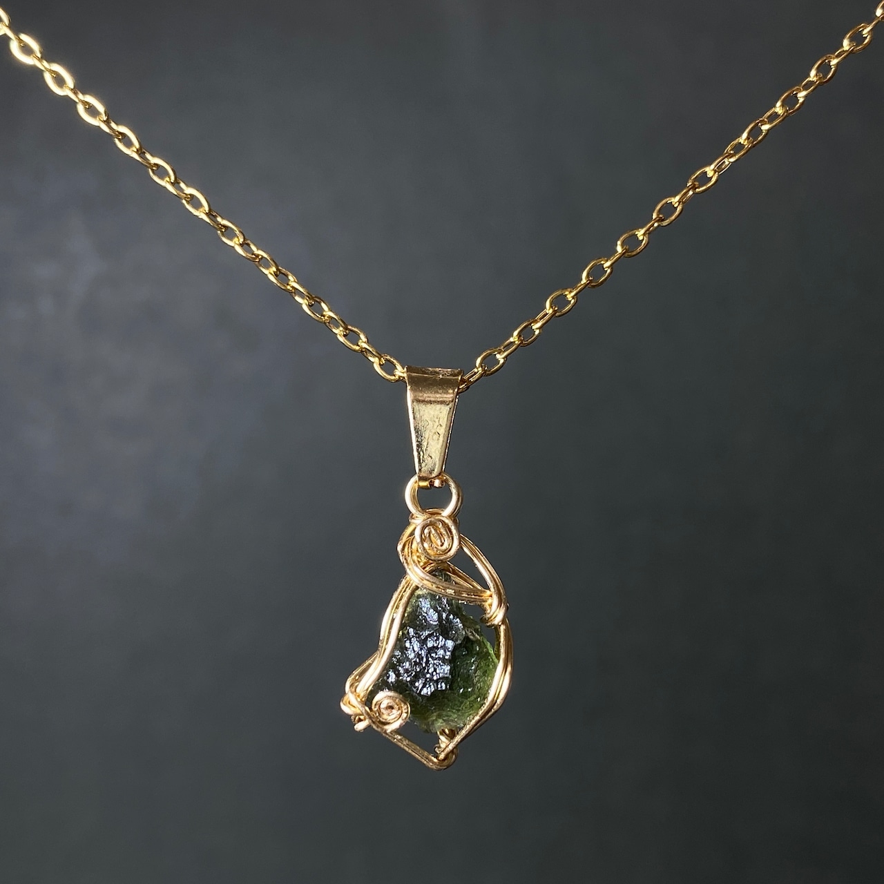 チェコで回収されたインパクトガラスです。近年、高騰し続けている隕石の1つで、形の綺麗なモルダバイトは年々少なくなっております。人気(需要)と在庫(供給)のバランスが崩れており、回収地の本場チェコでも偽物が量産されているほどです。本物のモルダバイトを手にしたいのであれば、安価で販売されているモルダバイトには手を出さないことをオススメします。ビーズのブレスレットや研磨された綺麗なモルダバイトも同様です。モルダバイトを購入する時にはご注意ください。
